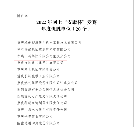 重庆市铁路集团荣获“优秀集体”