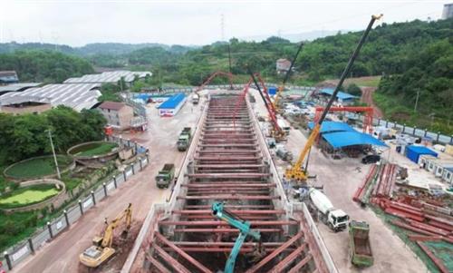 根据设计资料显示,15号线二期中梁山隧道正线下穿5组既有线,其中安全风险最高为下穿渭井下行线,拱顶埋深距离既有线钢轨顶仅8.61米,周边环境复杂,施工风险极高。为保障中梁山隧道施工期间既有线安全运营,根据铁路监管部门要求,设计采用D16型施工便梁对下穿范围内线路进行加固。该加固施工于2023年12月完成桩基础施工,2024年4月开始筹备架梁工作,至5月16日凌晨完成全部架设任务,安全恢复列车通行。